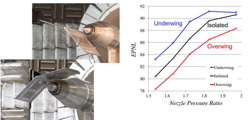 Description: Configurations featuring chevrons, rectangular geometries, and Jet-Surface Interaction (JSI) setups